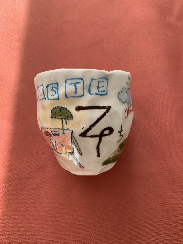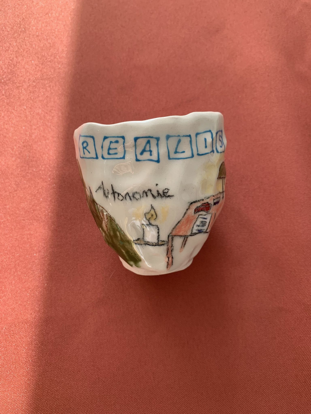 Il s'agit d'une pièce unique en Grès modelée et décorée à la main.